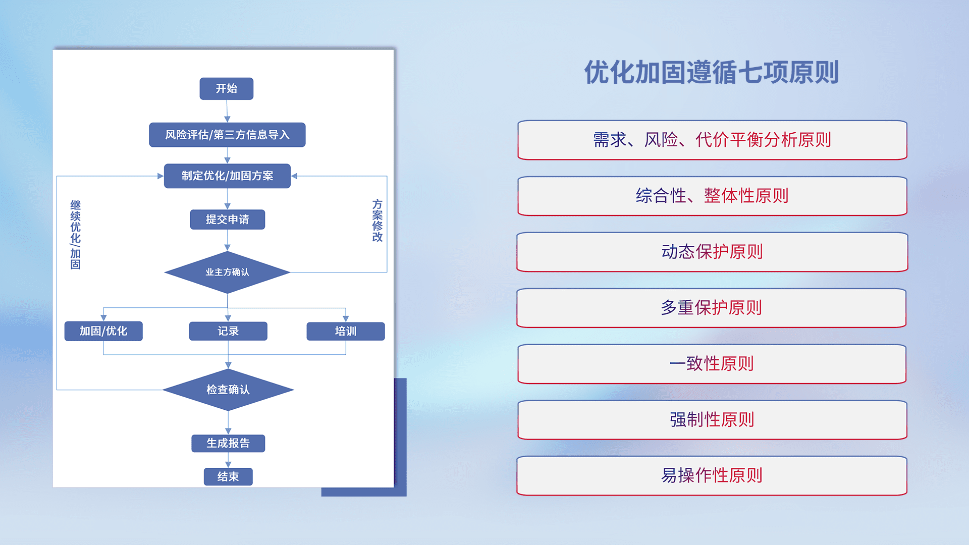 最大程度利用现有资产,,,,对评估发现的问题进行封堵与整改,,防止漏洞被利用,,提升整体网络安全性,,,为客户带来高标准的优化加固服务。。